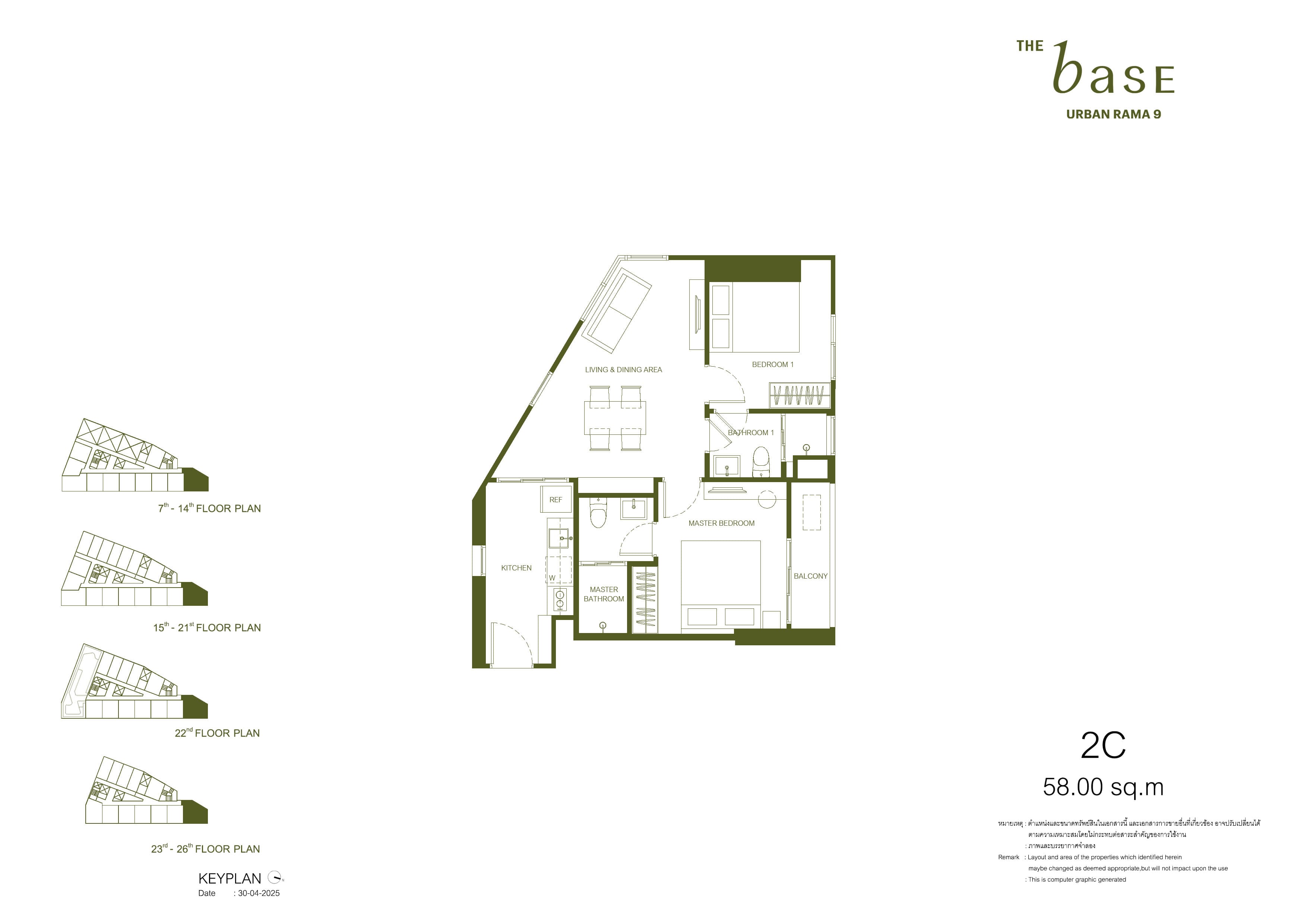 2 Bedroom, 2 Bathroom : 58 sq.m.
